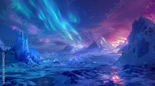Naklejka premium Tranquil aurora-lit sky over snow backdrop