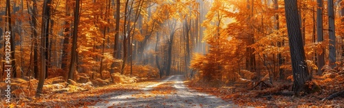 © gen_pick, Fototapeta premium Tranquil Autumn Forest Path in Vivid Anime Style