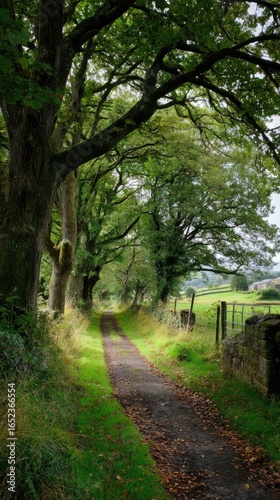 Obraz premium Tranquil autumn path in green forest