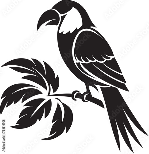 Obraz premium Tranquil Avian Beauty: Tropical Bird Black Logo Vector Exotic Jungle Symphony: Perched Bird Vector Logo Icon Design