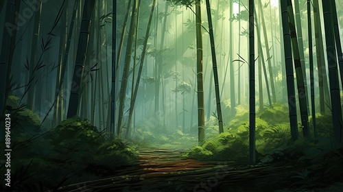 © munawaroh, Obraz premium Tranquil Bamboo Forest Path.
