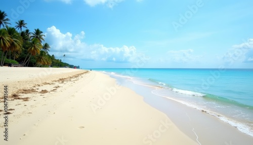 Obraz premium Tranquil beach escape under a clear sky