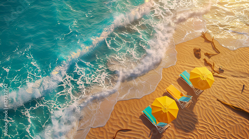 © Chananphat, Fototapeta premium Tranquil Beach Paradise: Azure Waters and Golden Sands