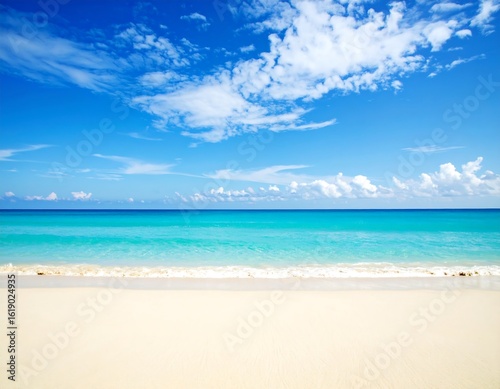 Obraz premium Tranquil beach scene under a vibrant blue sky