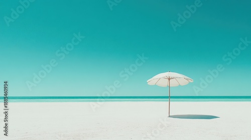 © embun, Fototapeta premium Tranquil beach scene with a single umbrella.