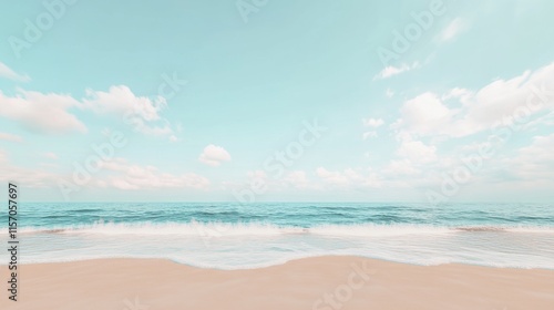 © Aris Suwanmalee, Obraz premium Tranquil beach scene with soft waves and clouds