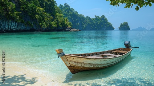 Obraz premium Tranquil beach scene with traditional boat