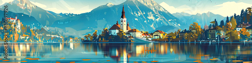 Naklejka premium Tranquil Beauty - Lake Bled Illustration