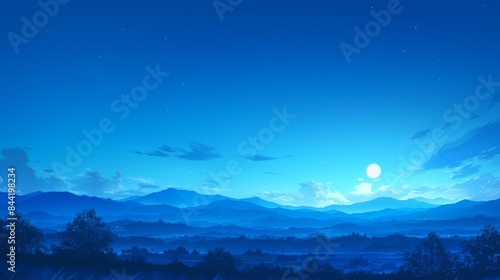 Fototapeta premium Tranquil Blue Mountain Landscape Under a Bright Moon