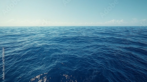 Fototapeta premium Tranquil Blue Ocean Waters Under a Pale Sky, Horizon Line and Gentle Ripples