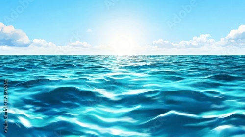 © Sakdecha, Obraz premium Tranquil Blue Ocean Waves Under Bright Sky with Soft White Clouds