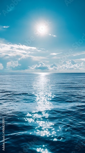 © atar, Fototapeta premium Tranquil Blue Ocean with Sun Glimmering on Water Surface
