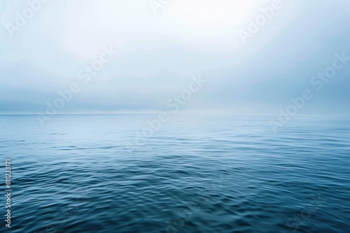 © Serhii, Fototapeta premium Tranquil Blue Sea. Calm Ocean Landscape with Hazy Background and Cloudy Sky over Horizon