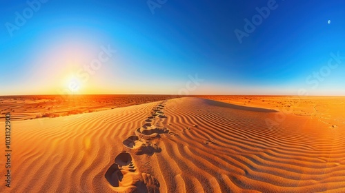 Naklejka premium Tranquil Dawn Over Endless Desert Landscape