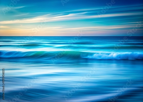 Obraz premium Tranquil Deep Blue Ocean Seascape with Soft Motion Blur Highlighting Gentle...