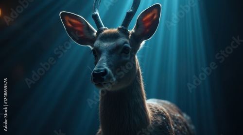 © Cloudy, Obraz premium Tranquil Deer in Light Rays
