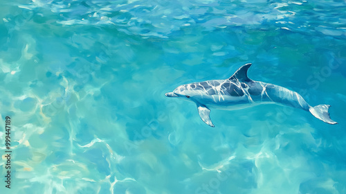 Obraz premium Tranquil Dolphin Swimming in Clear Blue Water