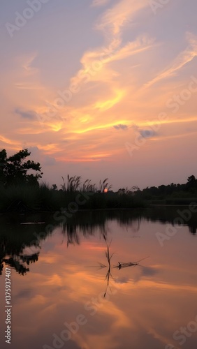 © Kimichiren, Obraz premium Tranquil Dusk Reflection