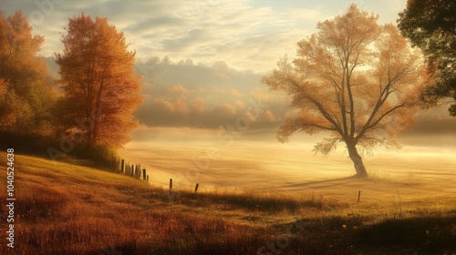 Obraz premium Tranquil Fall Scene with Light Mist