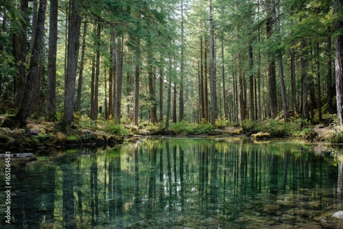 Obraz premium Tranquil forest reflecting in a clear stream