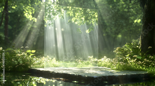 © abid, Fototapeta premium Tranquil forest scene with a clear rectangular panel