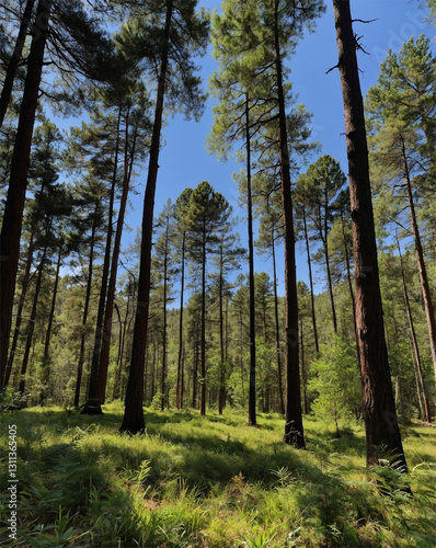 © Romeo, Fototapeta premium Tranquil Forest Stream with Grass and Sunlit Trees at Sunset, Beautiful Nature Landscape