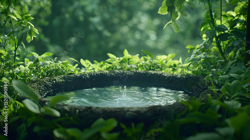 Naklejka premium Tranquil Forest Water Splash In Stone Basin
