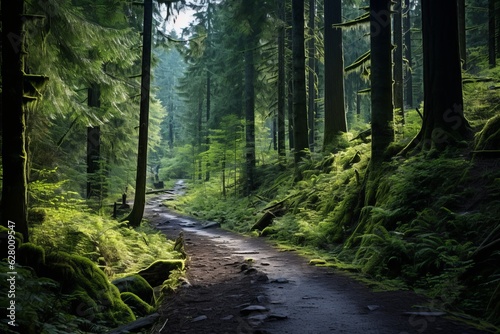 Obraz premium Tranquil Forest With Lush Greenery, Generative AI