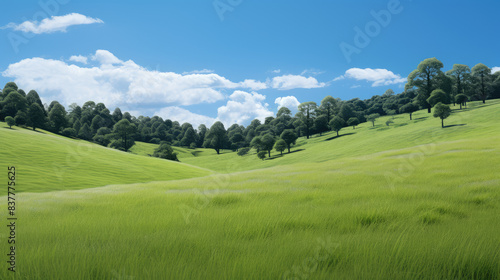 Obraz premium Tranquil Green Hills Under Bright Blue Sky
