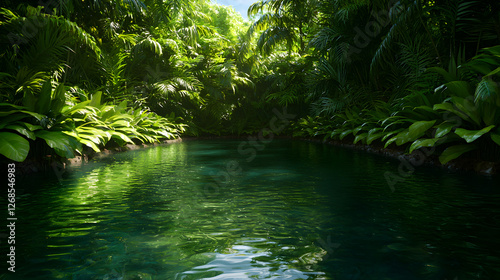 Obraz premium Tranquil Green Jungle River With Lush Vegetation