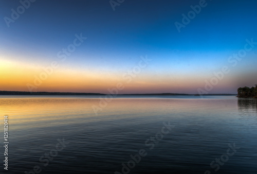 Naklejka premium Tranquil HDR Lake Sunset with Soft Gradient Sky
