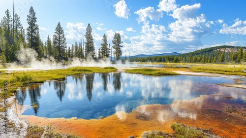 © nabila, Fototapeta premium Tranquil Hot Spring Landscape with Reflections and Blue Sky