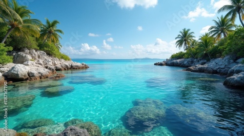 © Burak, Fototapeta premium Tranquil Island Cove with Vibrant Coral Reef