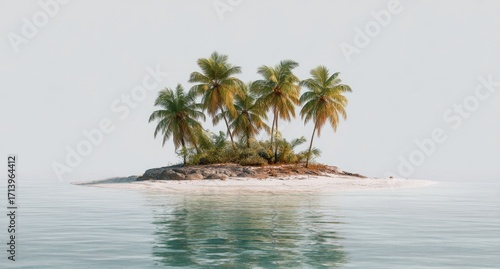 © Balbod, Fototapeta premium Tranquil island with palm trees, soft light
