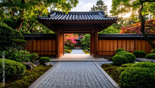 © Berlian, Fototapeta premium Tranquil Japanese garden gateway