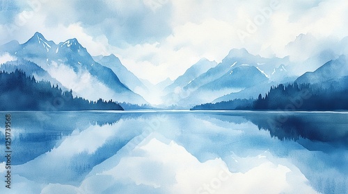 Fototapeta premium Tranquil lake reflection mountain range digital art serene environment wide...