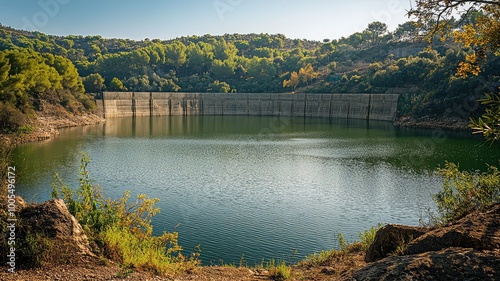 Fototapeta premium Tranquil lake surrounded by lush greenery, capturing the beauty of nature and...