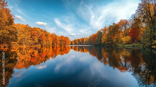 © HolmStudio, Fototapeta premium Tranquil Lake with Autumn Colors and Reflections