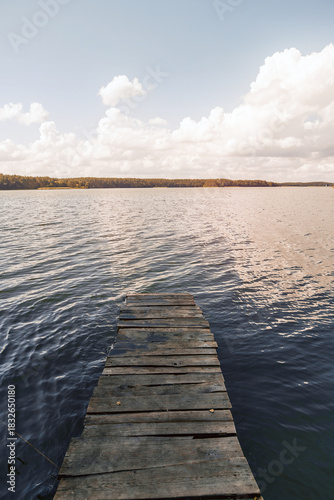 © AlexGo, Fototapeta premium Tranquil lake with trees and blue sky