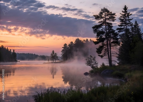 Fototapeta premium Tranquil Lakeside at Dusk with Soft Hues – Peaceful Water Reflection, Serene...