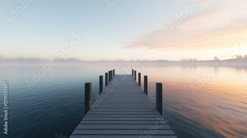 © Vilaphon , Fototapeta premium Tranquil lakeside dock at sunrise serene nature scenery peaceful environment scenic viewpoint