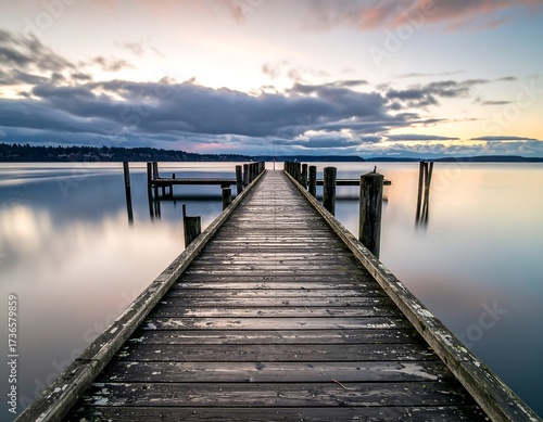Obraz premium Tranquil Lakeside Dock at Sunset
