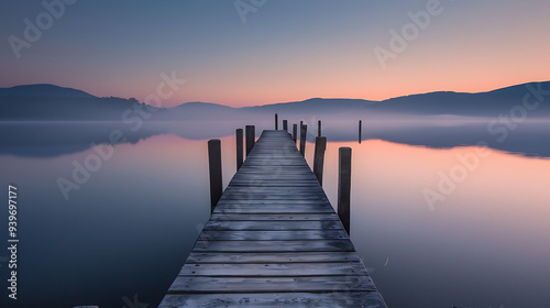 Obraz premium Tranquil Lakeside Dock at Sunset