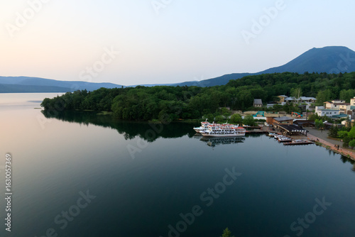 © Bossa Art, Fototapeta premium Tranquil Lakeside View of Lake Akan with Mount Oakan in Hokkaido, Japan