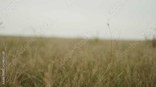 © Kitta Studio, Obraz premium Tranquil Landscape of Grass Field Under a Soft Gray Sky