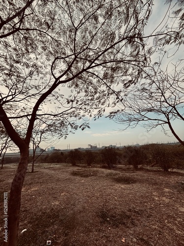 © Shammi Sani, Fototapeta premium Tranquil Landscape with Trees and Cityscape in the Background