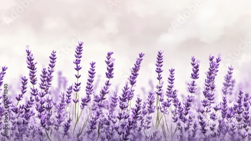 © Nice Seven, Fototapeta premium Tranquil Lavender Field Under Soft Clouds