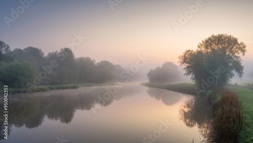 Obraz premium Tranquil Misty River at Dawn