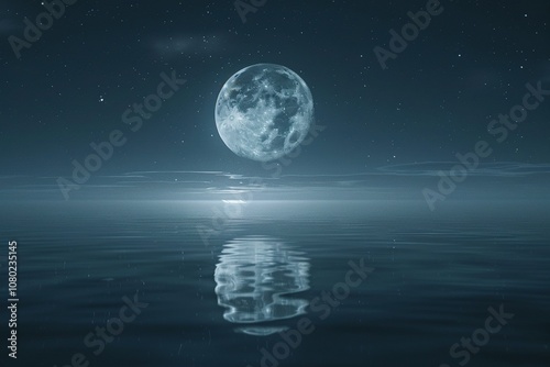 © ObitoStocks, Obraz premium Tranquil Moon Reflection Creating a Calm Scene
