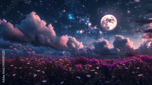 Naklejka premium Tranquil Moonlit Landscape at Night